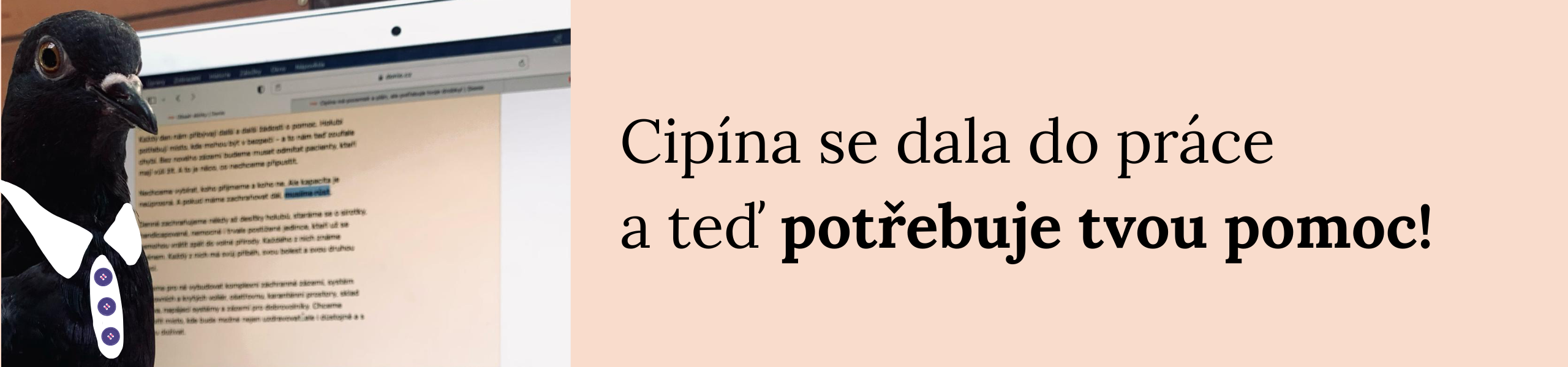 Pomozte Cipíně postavit bezpečný domov pro nemocné a zraněné holuby.