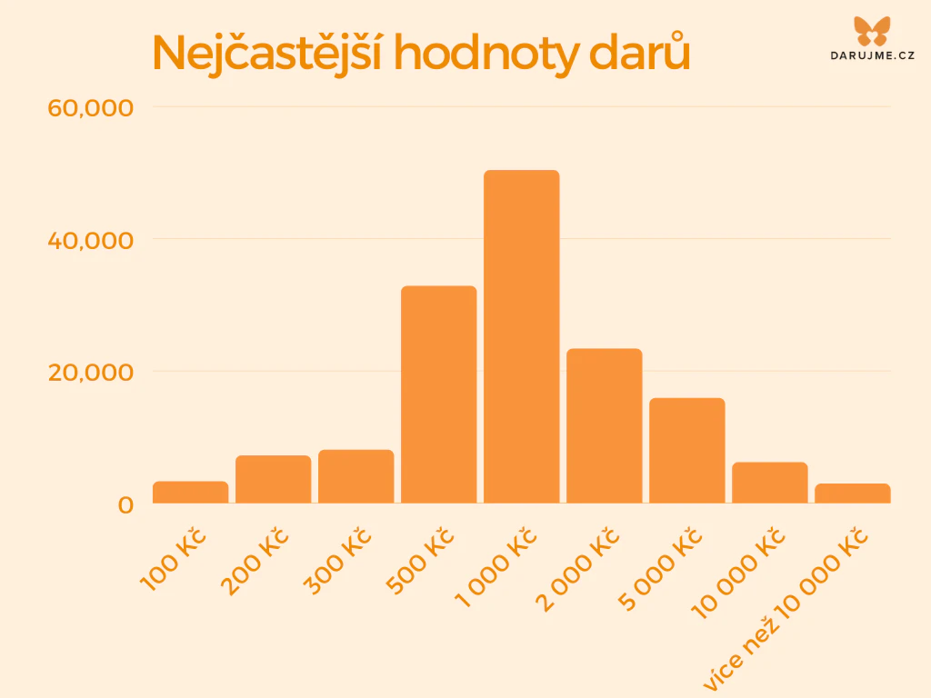 , druhým nejvyšším 2 mil. Kč a třetím nejvyšším 1 mil. Kč, nejčastěji lidé zasílali
