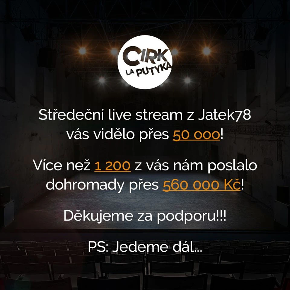 Na zákaz hromadných akcí mezi prvními reagoval Cirk La Putyka, kterému se do teď podařilo vybrat přes 740 000 Kč.