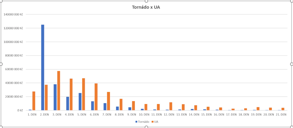 Zajímavé srovnání přináší také data z ČR, když srovnáme pomoc Ukrajině a pomoc zasaženým lidem tornádem na Moravě v roce 2021.
