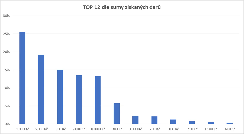 Když se však podíváme, kolik jednotlivě nastavená darovací tlačítka přinesla celkovou sumu darů, situace se významně promění.