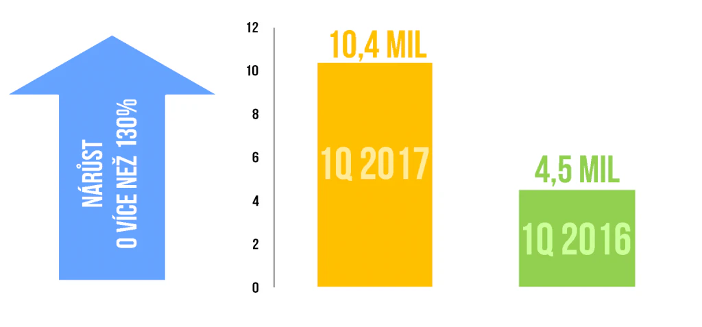 My v kanceláři Darujme.cz vidíme čísla o dárcovství. A první čtvrtletí nám v číselné podobě přineslo jeden krásný příběh. Příběh, jenž se stal nejen díky lidem, kteří se rozhodli darovat, ale i díky skvělým fundraiserům z neziskovek, kteří získávají podporu na nejrůznější projekty pro dobrou věc. Děkujeme Vám! První čtvrtletí přineslo darovanou částku v hodnotě vyšší než 10 milionů Kč, což je 130% nárůst oproti stejnému čtvrtletí roku 2016.