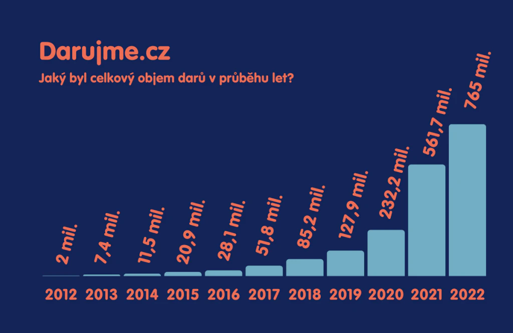 Výše zmíněná čísla jen dokazují, že je online darování na vzestupu. Podle dat Darujme.cz se za poslední tři roky objem darovaných prostředků ztrojnásobil. Růst celkového soukromého dárcovství v Česku pak naznačují data finanční správy z daňových přiznání. Konkrétně částky darů, které si odečítáme z daňového základu. Za rok 2021 se v případě fyzických osob jednalo o 3,1 miliardy korun, u právnických osob dokonce o 5,8 miliardy korun. Dále lze z dostupných údajů finanční správy vyčíst, že za poslední tři roky rostlo soukromé dárcovství v průměru o 12 procent.