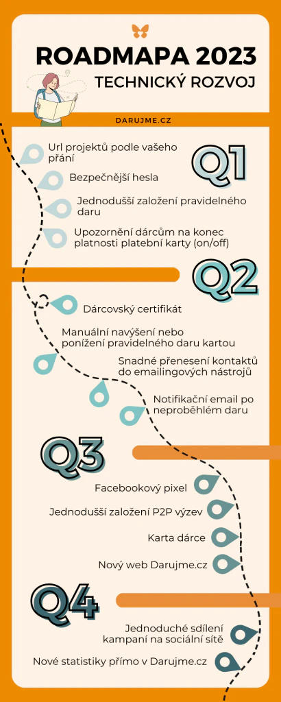 jsme se věnovali technickým funkcím z minulého roku. Nyní se podíváme na to, co jsme nasadili letos a co nás ještě společně čeká. Věříme, že vás nové funkce opět potěší, usnadní práci vám i vašim dárcům a také zvýší bezpečnost vašich účtů na Darujme.cz. Tak se na to vrhněme.