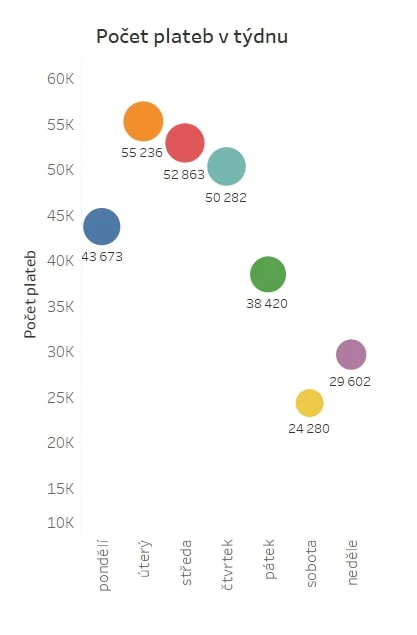Nejčastěji lidé darují v úterý až čtvrtek. Nejméně pak o víkendech (nejslabším dnem je sobota). Průměrná výše daru je přibližně stejná pro každý den.