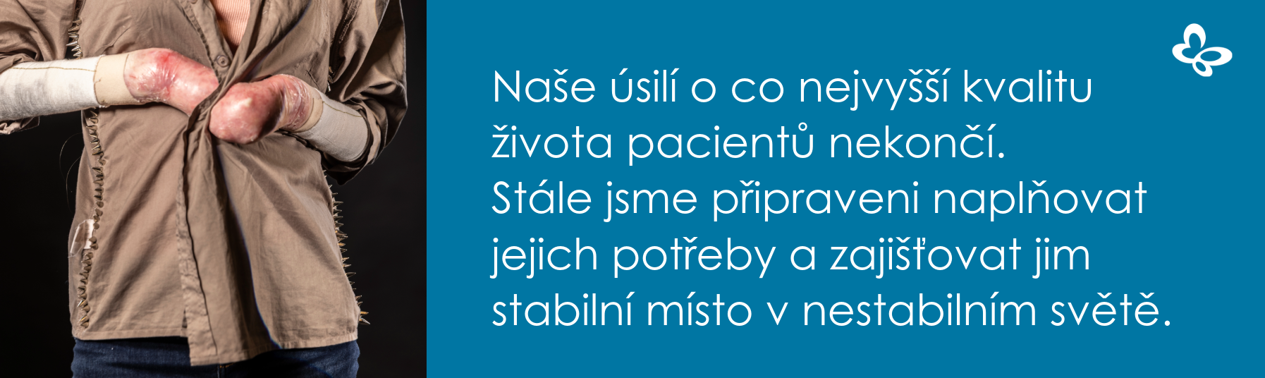 Zázemí, které pacientům už 21 let poskytuje pacientská organizace DEBRA ČR, se ocitá v ohrožení. Abychom zachovali péči o pacienty a jejich blízké, potřebujeme Vaši laskavou pomoc.