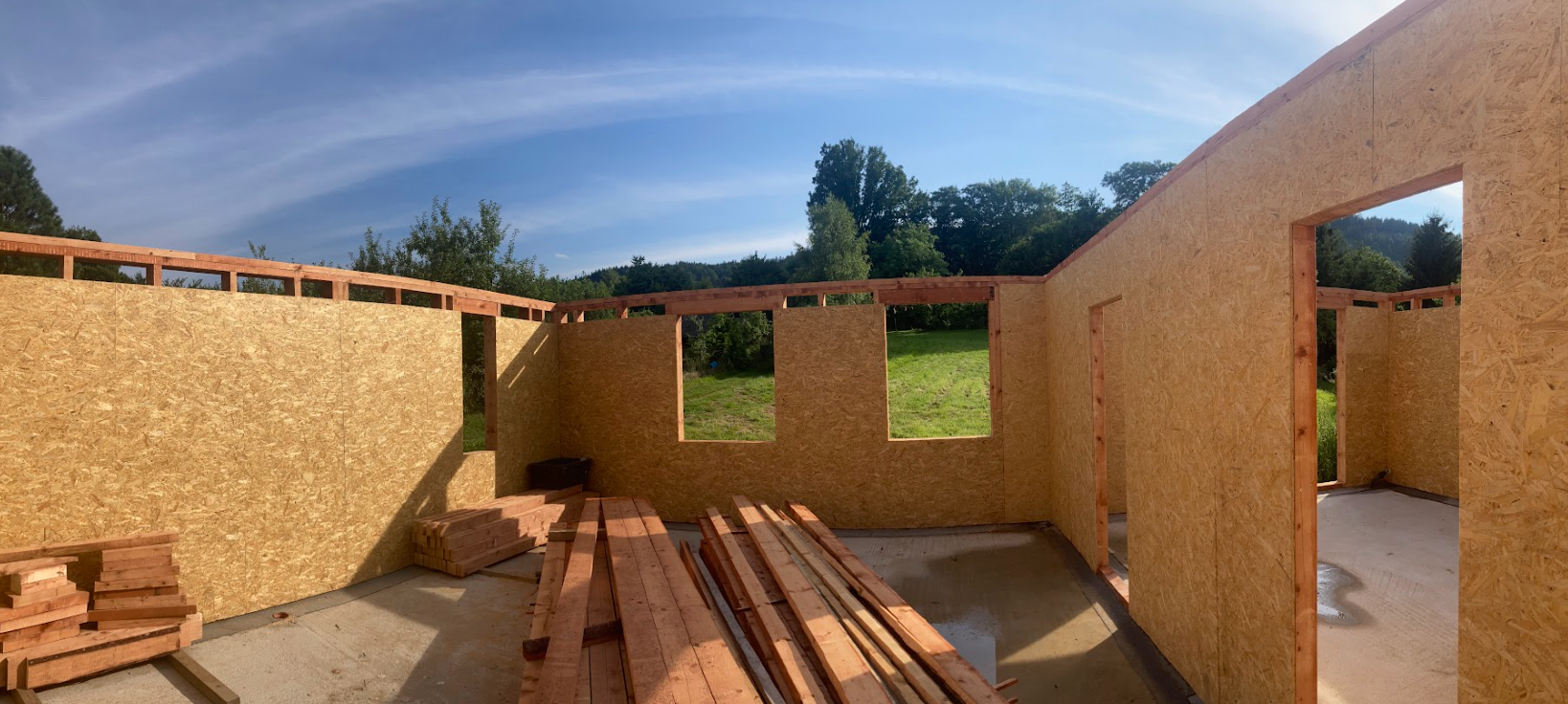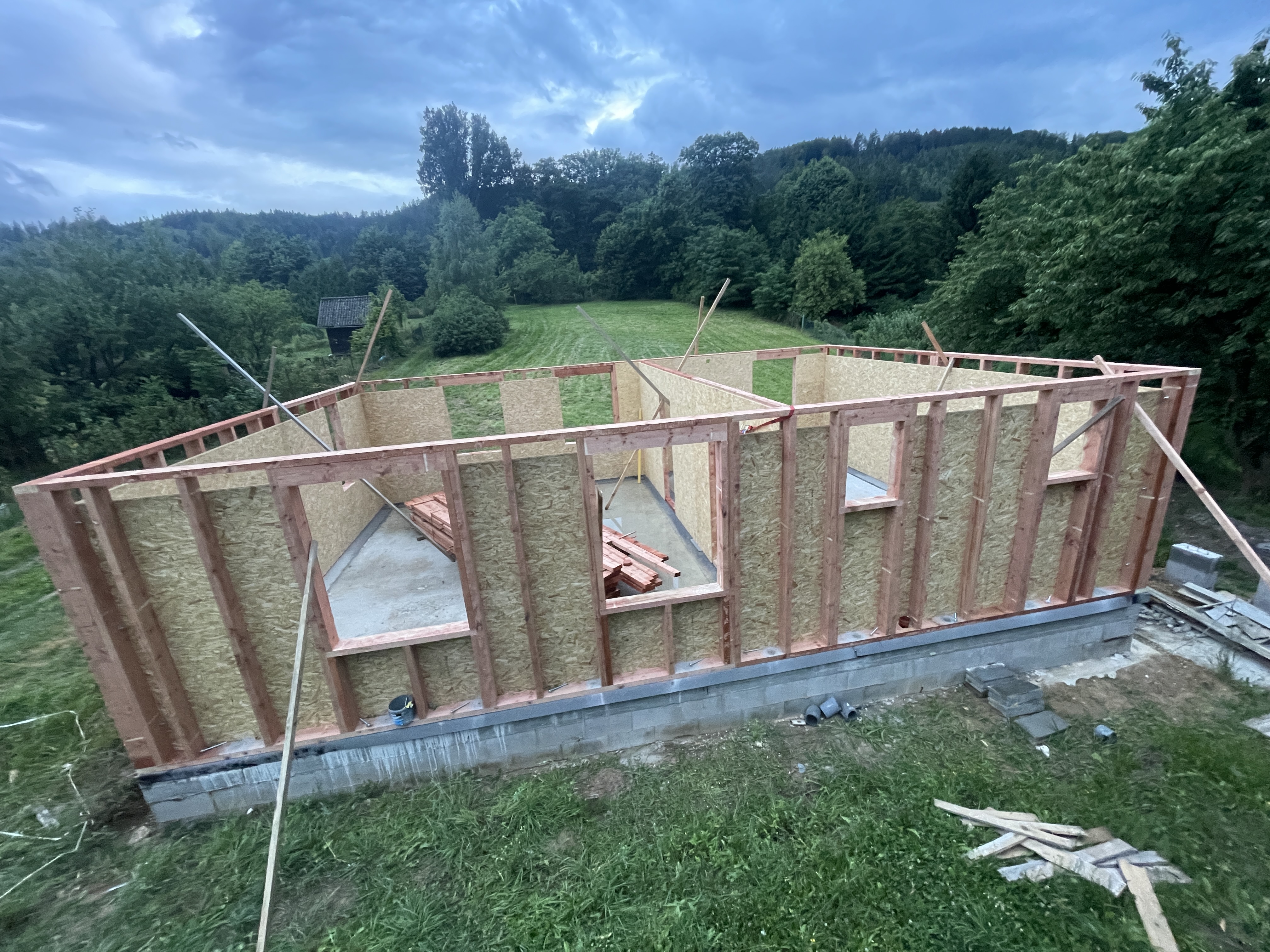 Do konce října by měla být hrubá stavba komplet a vnitřky budou z velké části v naší režii, tak nám drže palce.