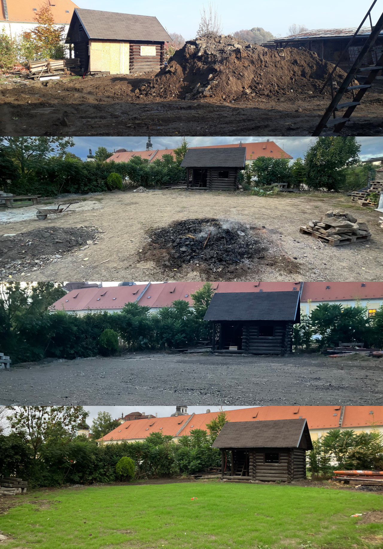 Platby za úpravy dvorku a zemní práce – mluvíme o několika nákladních vozech hlíny, ploty a zdi u klubovny, terénní úpravy .