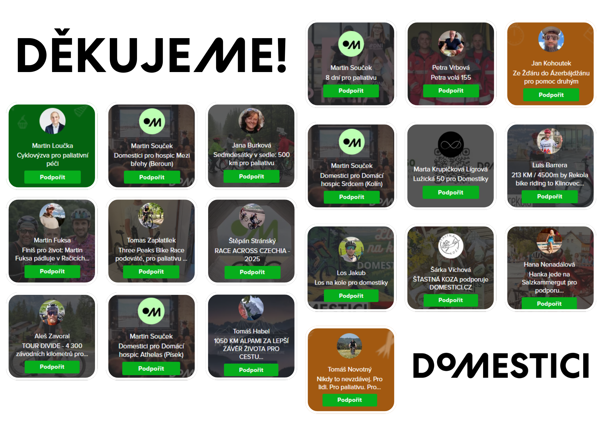 - Create your own fundraising challenge at the bottom of this page and involve people around you! Connect Domestici.cz with your sporting challenge, event, or personal story.