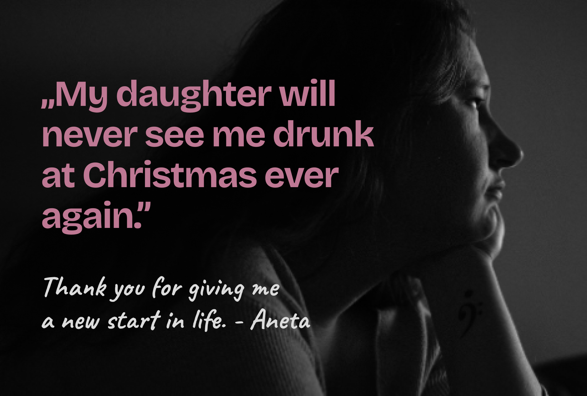 Aneta grew up in a children’s home because her parents abandoned her. At school, she never fit in and eventually turned to alcohol. At seventeen she became pregnant, and her baby was taken away. Hitting rock bottom pushed her to change. She has now been sober for two years and works every day to be able to afford her own apartment and create a stable home environment. Today she is surrounded by friends and is determined to give her daughter the secure home she herself never had.