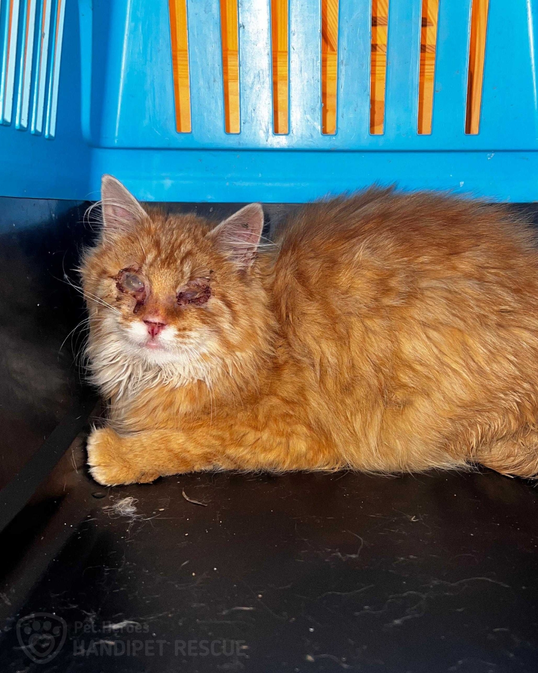 Přijali jsme kocourka ve velmi vážném stavu. Očička mu vyhnisala, má příšernou rýmu a těžkou podvýživu... Prosím, pomůžete ho zachránit?