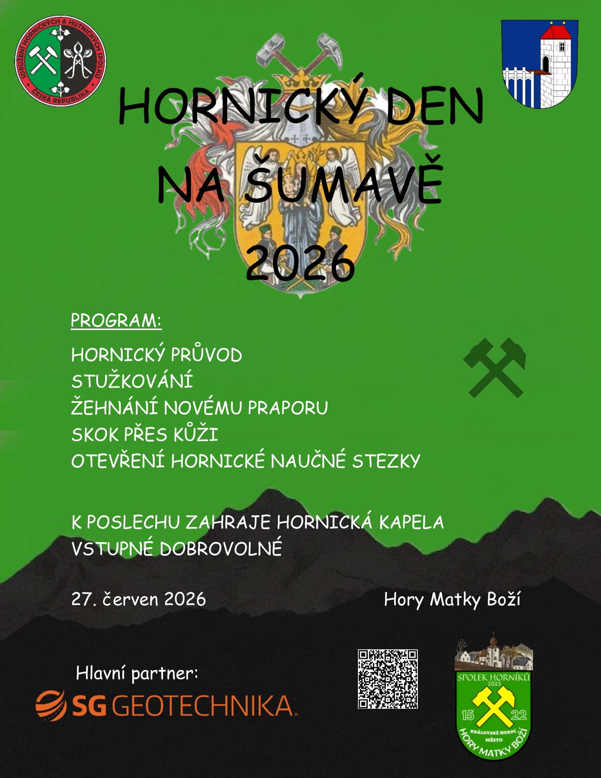 Hornický den na Šumavě 2026 je kulturní a společenská událost, která navazuje na více než pětisetletou hornickou tradici královského horního města Hory Matky Boží.