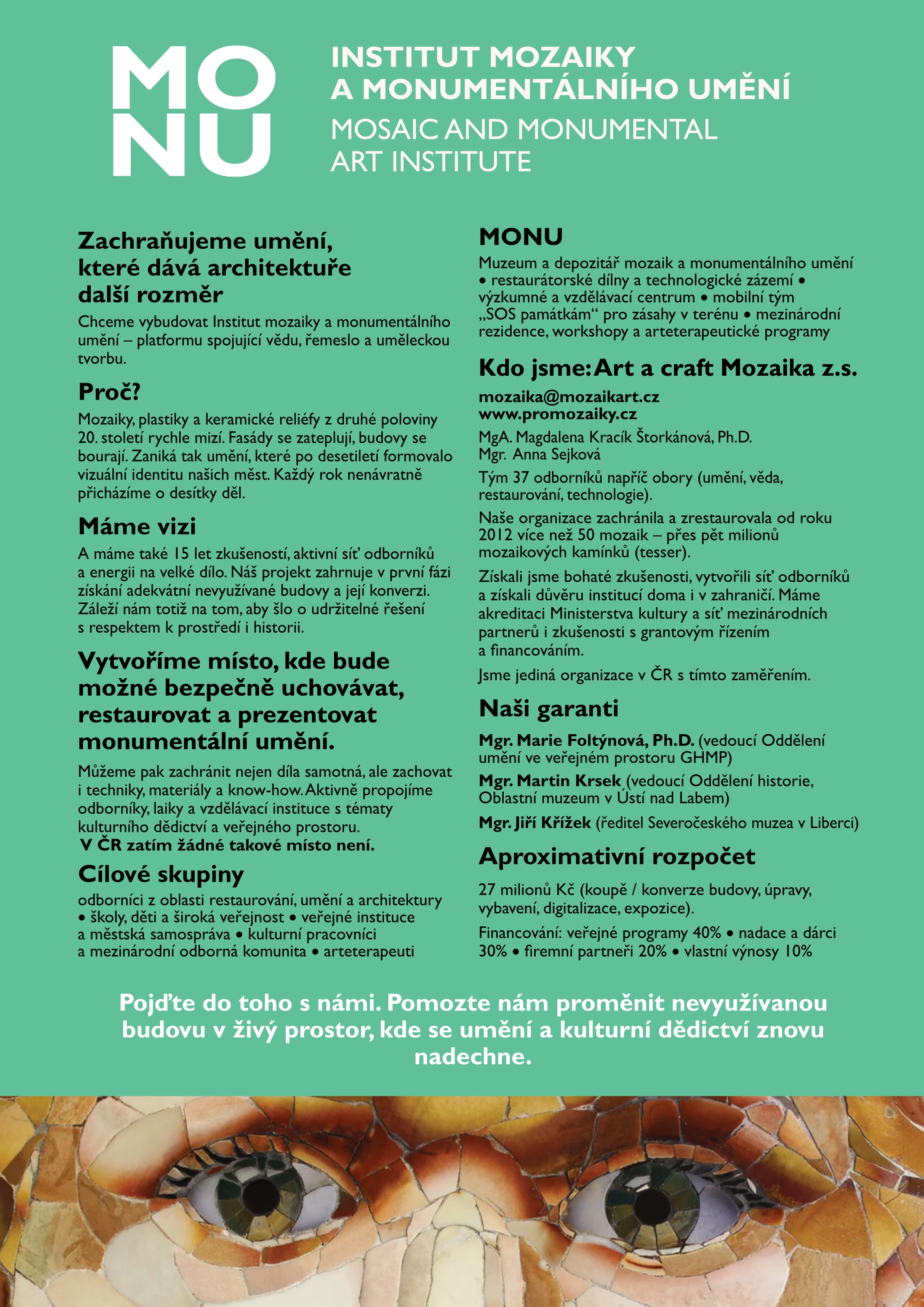 MONU – Institut mozaiky a monumentálního umění Zachraňujeme umění, které tvoří architekturu.