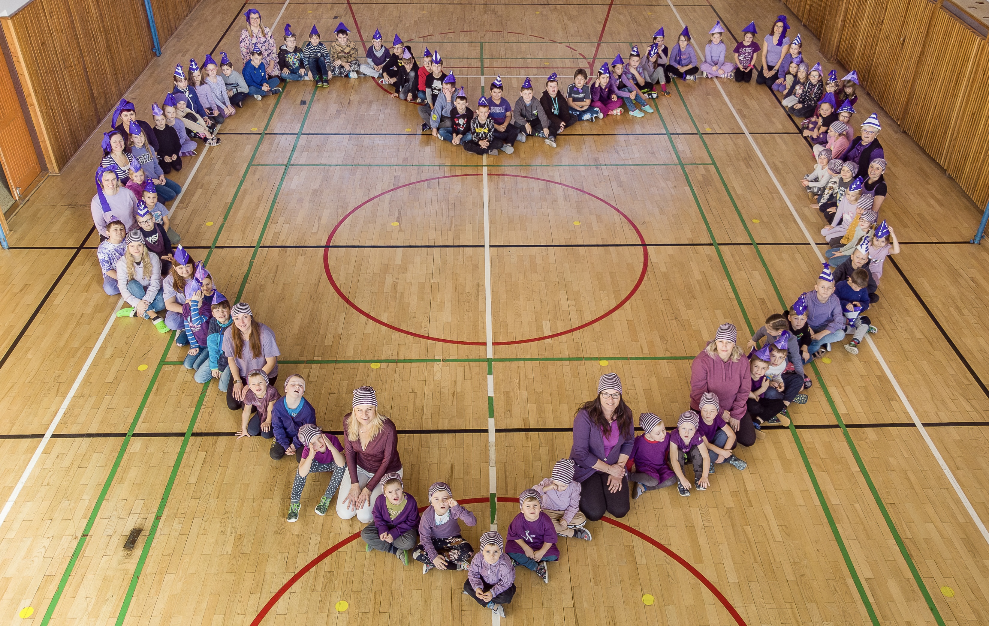 Na fotce vidíte děti ze ZŠ Suchá Loz na česko-slovenském pohraničí, které se zapojily do Týdne pro wellbeing a na závěr týdne společně vytvořily srdce jako symbol školy, kde se cítí dobře.