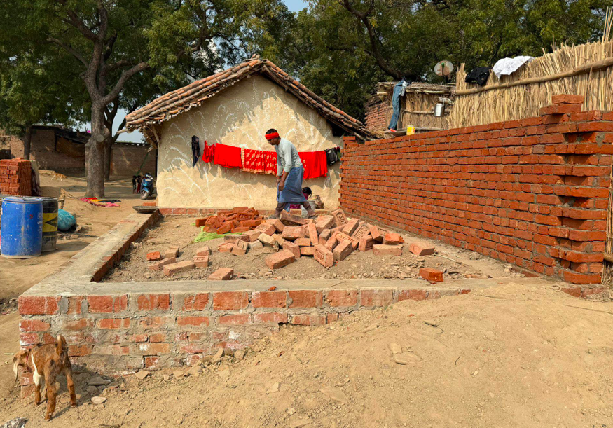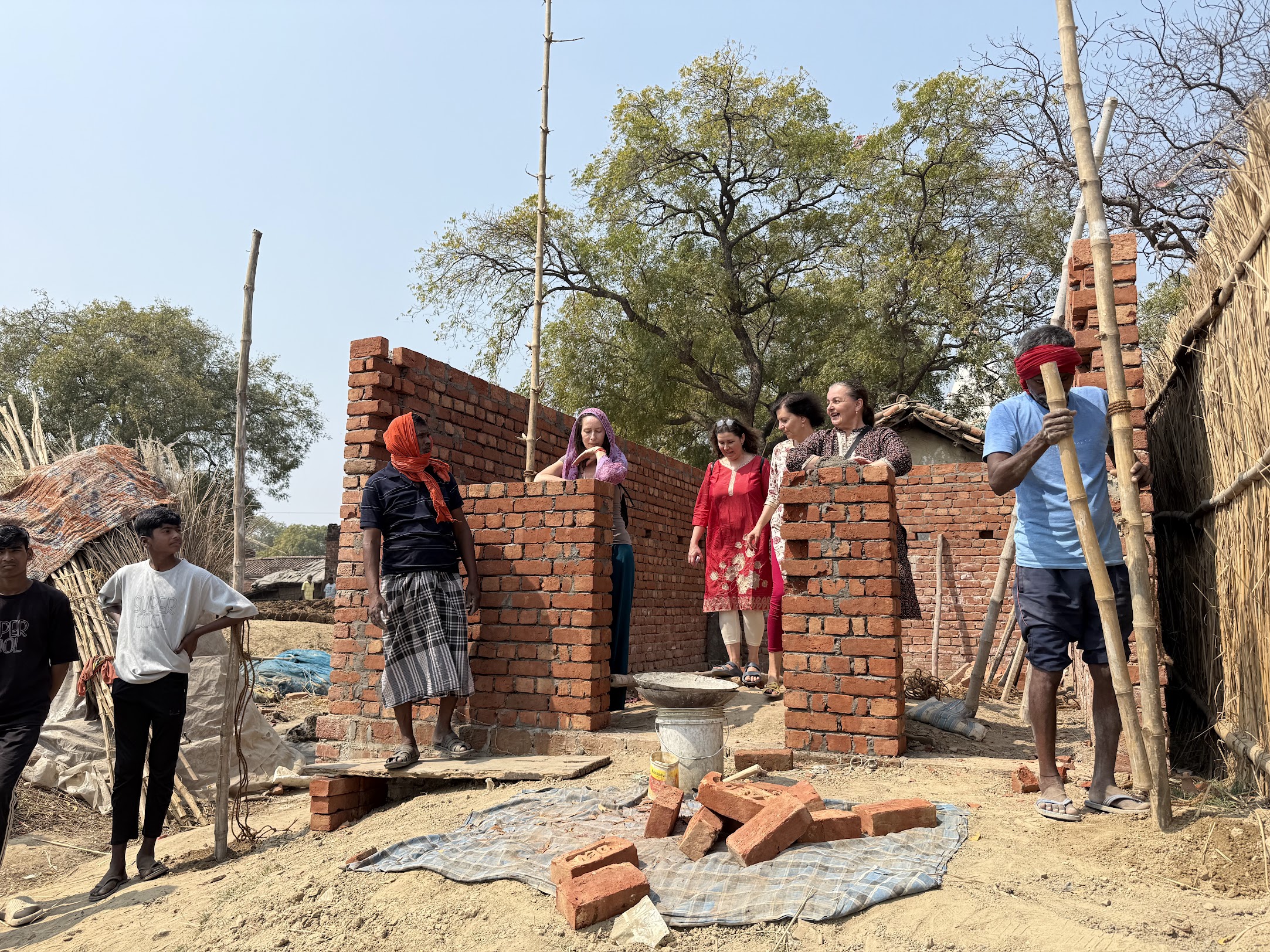 V této vesnici jsme už postavili jednu toaletu, venkovní sprchu pro rodiny bez vody, zkušenosti s šicí dílnou pro ženy máme z našeho ášramu z Váranasí.
