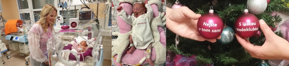 Pro každou rodinu po předčasném porodu jsme připravily balíček s informacemi a dárky, aby věděli, že v tom nejsou sami. Na tvorbě těchto materiálů spolupracujeme s předními odborníky české neonatologie, sestrami, laktačními poradkyněmi a psychology. Snažíme se však poskytovat rodičům informace v řeči srozumitelné i nezdravotníkům. Zároveň jim předáváme povzbuzení, příběhy a vzkazy rodičů, kteří touto životní zkušeností již prošli. Po celý rok poskytujeme podporu a povzbuzení rodinám, kterým se miminko narodí předčasně. Už brzy proběhne po celé republice, ve všech neonatologických odděleních, vánoční předávání Nedoklubka. To je pro nás vždy silnější, než jindy… miminka, které obdarováváme totiž ještě letos neměla oslavit Vánoce…