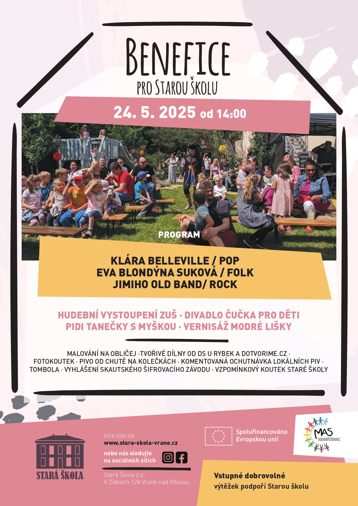 Každá kapka se počítá – děkujeme, že v tom jedete s námi! Pojďte se s námi potkat a vše oslavit na Benefici pro Starou školu, kterou pořádáme 24. května od 14:00. Čeká vás lákavý program pro celou rodinu a příjemně strávené odpoledne. Těšíme se na vás!