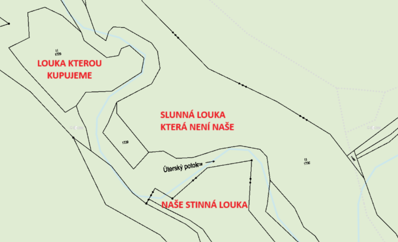 Pořádáme každý rok u městečka Úterý dva skautské tábory - jeden třítýdenní pro více než 70 účastníků, druhý dvoutýdenní pro 40 účastníků - a chtěli bychom vybrat peníze na nákup táborové louky. V tuto chvíli táboříme na dvou loukách, přičemž jedna z nich je naše (té říkáme stinná) a druhá je ve vlastnictví někoho jiného (slunná). Není však vůbec jisté, že nám tato druhé louka bude poskytnutá na tábor i příští roky. Rádi bychom tedy zakoupili louku, která je přes potok od té naší - dala by se tedy využít v případě, že by nám nebylo dovoleno tábořit na slunné louce, ale zároveň bychom ji chtěli využít i tak, více jí zkultivovat, postavit na ní táborové stavby a podobně. Jedná se o louku s p. č. 1726 v k. ú. Vidžín .