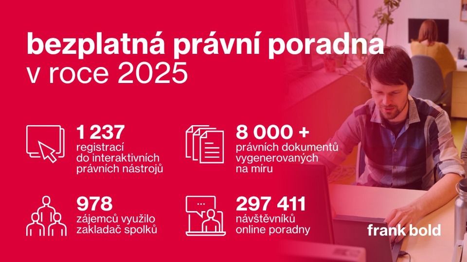 Online právní poradna Frank Bold slouží všem, kteří se potřebují zorientovat v právních otázkách a předpisech. Nabízíme v ní zdarma stovky přehledných právních návodů, zodpovězených dotazů a vzorů. Díky nim se aktivní občané můžou zapojit do dění kolem sebe.