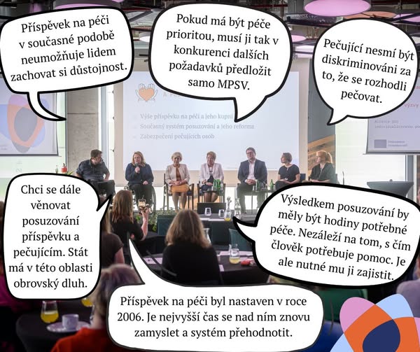 Na červnové konferenci Individualizovaná podpora 2025 jsme o tom diskutovali v panelu Ivou Merhautovou (Ministerstvo práce a sociálních věcí), Jakubem Novákem (Ministerstvo financí ČR), Hanou Geissler (AIP), Alenou Jančíkovou (Česká asociace paraplegiků - CZEPA), neformální pečující Lucií Ovsenákovou a dalšími. Shodli jsme se, že před námi stojí zásadní výzvy: příspěvek na péči dnes často nestačí k důstojnému životu v přirozeném prostředí, neformální pečující nesou velkou zátěž bez adekvátní podpory, systém posuzování ne vždy odráží skutečné potřeby a stát této oblasti stále nevěnuje dostatečnou pozornost.