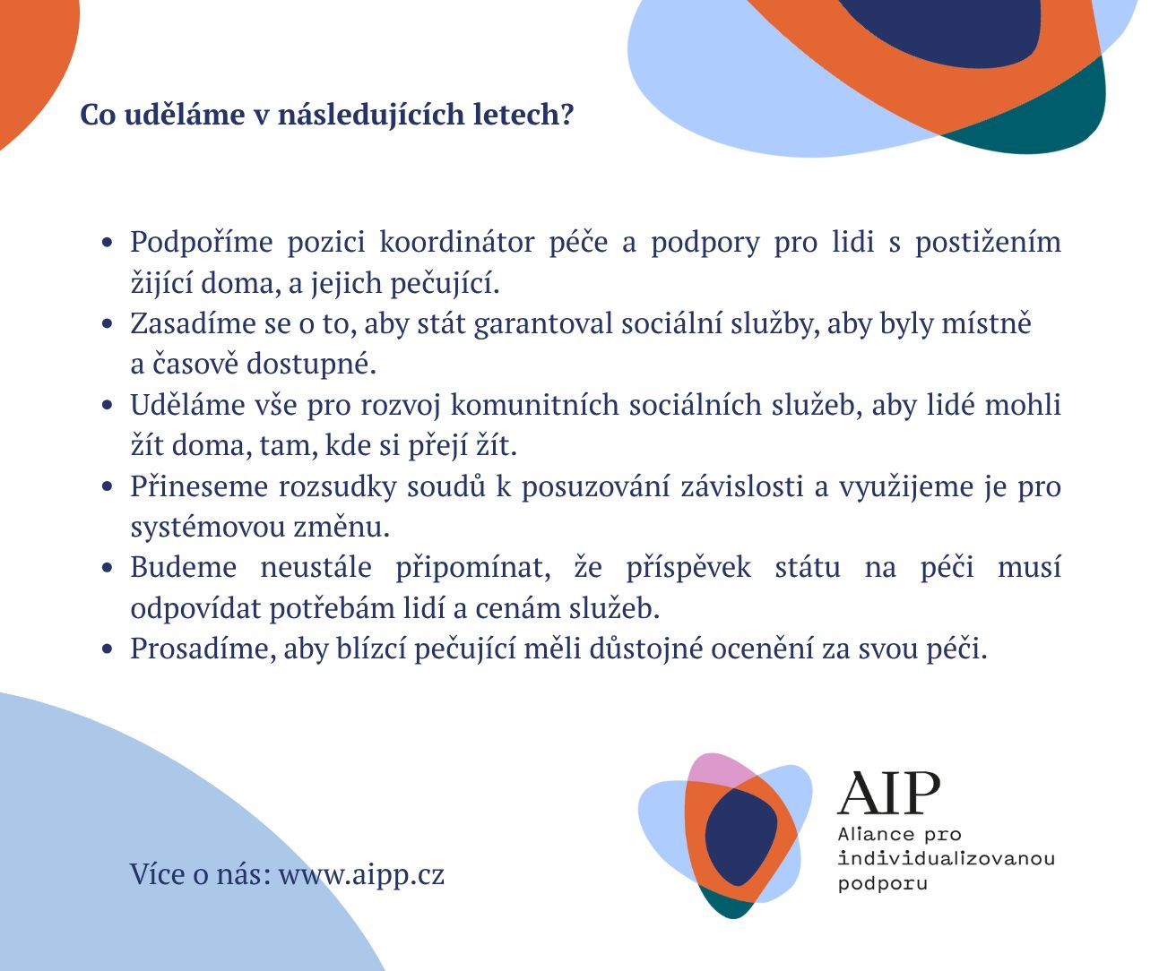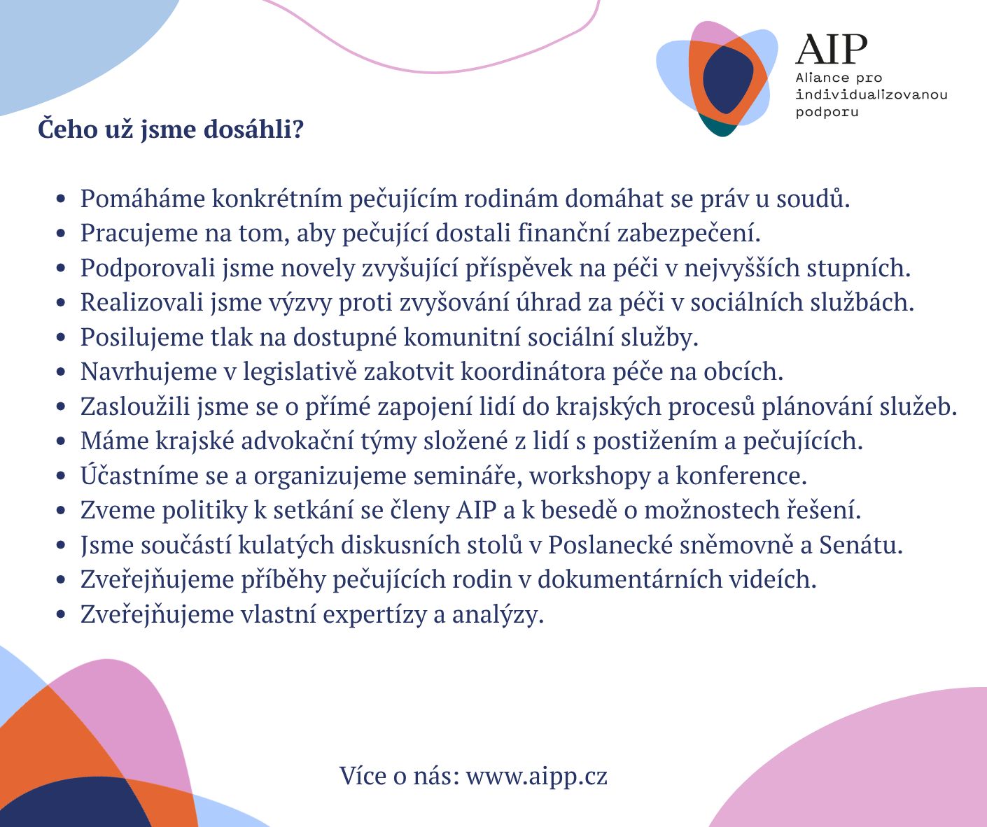 Děkujeme všem panelistům za otevřenou a inspirativní diskusi. Společně můžeme dosáhnout změn, které lidem s postižením i jejich pečujícím skutečně pomohou. Více informací a kompletní výstupy panelu najdete na webu AIP. A vám všem velmi štědrým dárcům děkujeme, že pomáháte s námi.