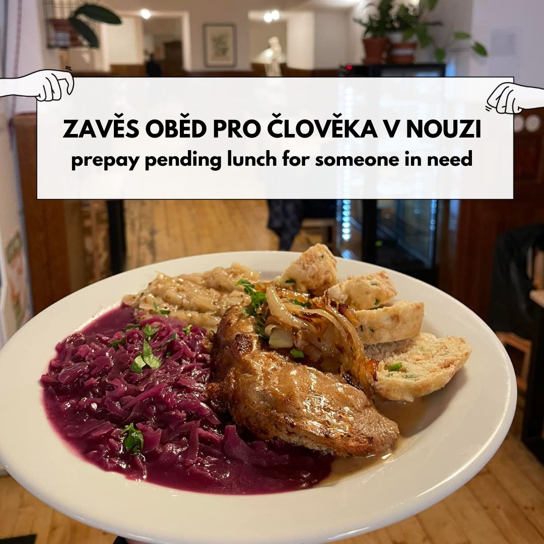 Buying a pending lunch means prepaying a lunch menu for someone who wouldn't normally be able to afford it. These lunches are handed out daily to people who find themselves in a difficult life situation, especially to homeless people. Thanks to you, they have the opportunity to eat lunch in our restaurant like other customers, with dignity and without stigma.