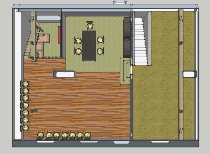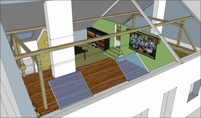 Součásti plánu je i zachování skladovací funkce půdy, kdy bude pro tyto účely ponechána cca 1/3 plochy, která bude účelněji uzpůsobena k ukládání táborového materiálu vhodným rozmístěním regálového systému. Velká „společenská” místnost pak může po táborech plnit i funkci místnosti pro údržbu tee-pee (šití, sušení, čištění, ...).