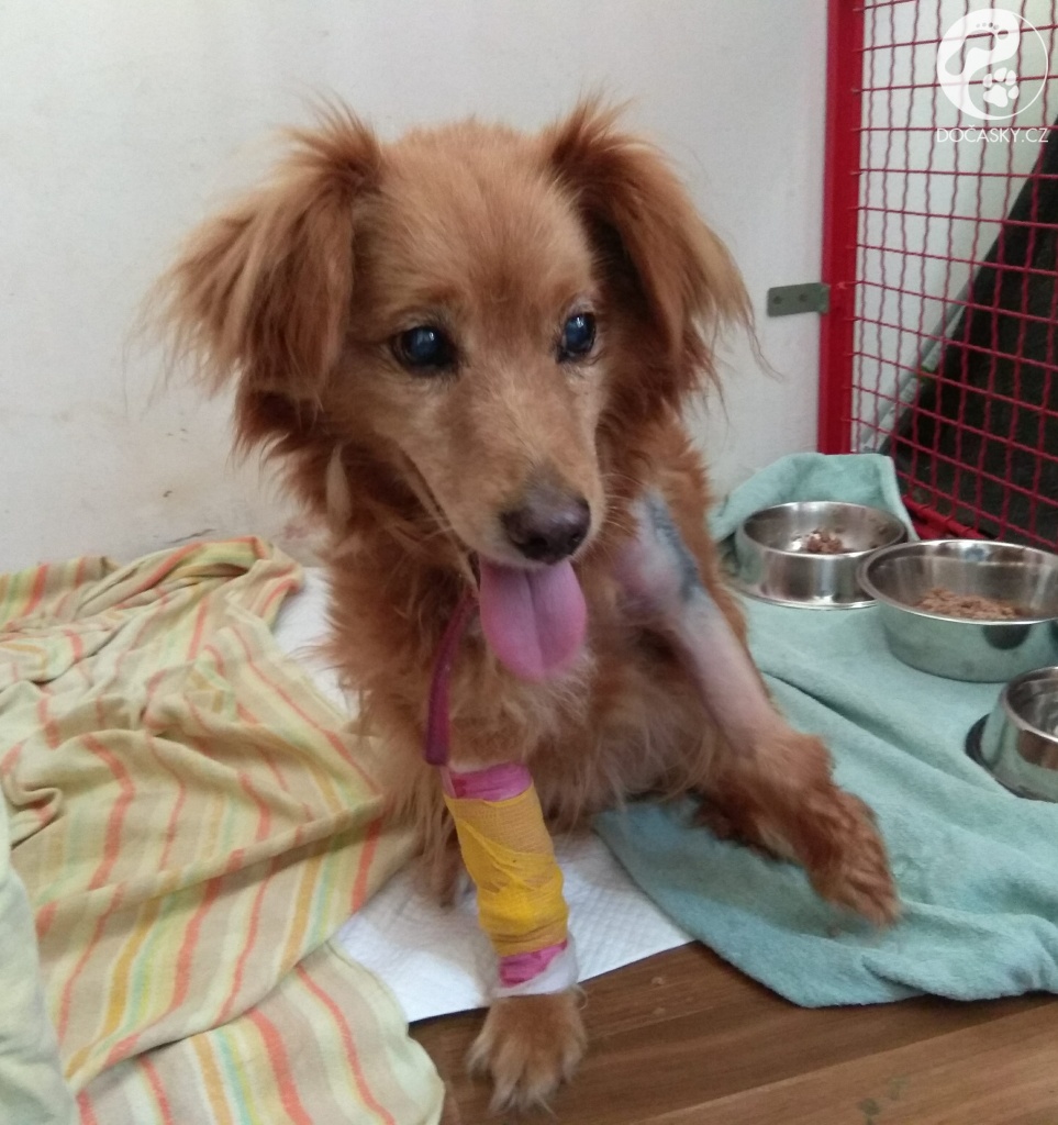 Dostal jméno FOX. Kulhajícího, zadredovaného, zablešeného Foxe jsme odchytili v mínus 12°C, v únoru 2018. Měsíc se toulal ulicemi a přespával v tujích. Nikdo mu nepomohl, lidé ho odháněli, protože na ně vrčel. Až u veterináře jsme odhalili pravý důvod jeho "agresivity". Měl v těle 5 broků a rozstřelenou ramenní kost. Dva měsíce po náročné operaci rehabilituje a den ode dne se jeho psychický i fyzický stav lepší. Na odchod do trvalé rodiny ale ještě připraven není. Podpořte nás ve snaze vrátit Foxovi pocit bezpečí a jistotu, že na něm lidem záleží.