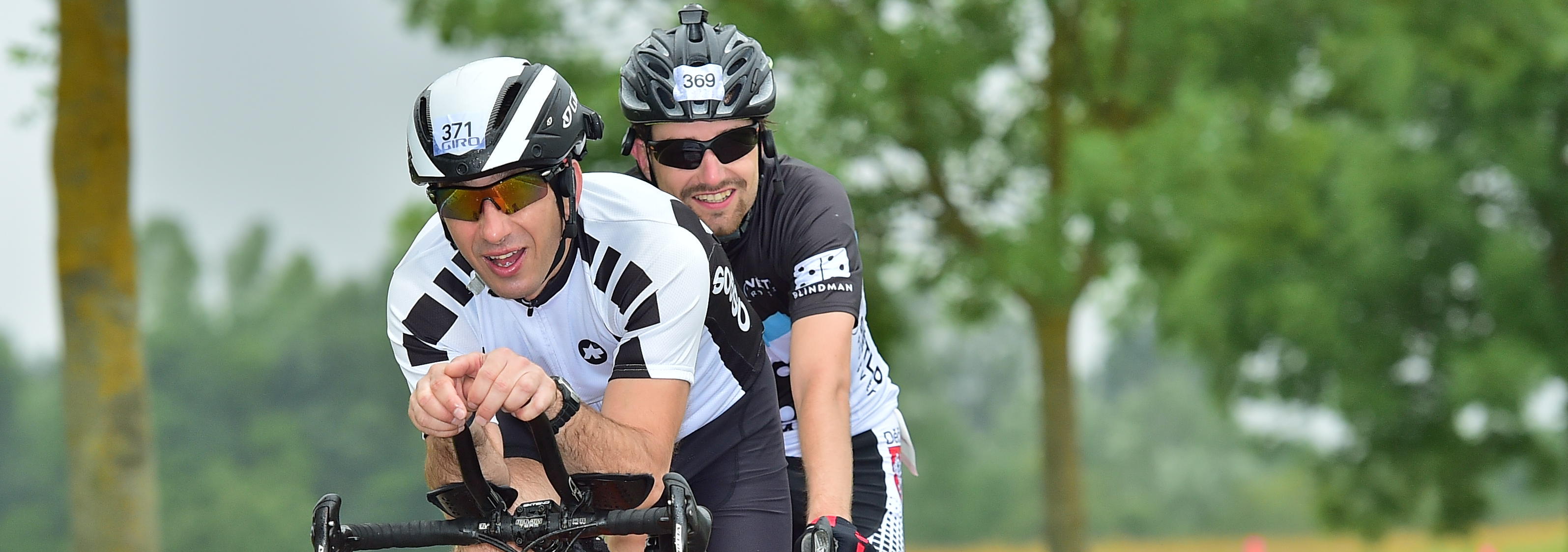 Marek je mýma "druhýma očima" a říká mi o všech překážkách na trase. Spolu už jsme absolvovali třeba IronMana (4 km plavání, 180 km na kole a 42 km běhu ) v čase 11 h 10 min a 19 sec.
