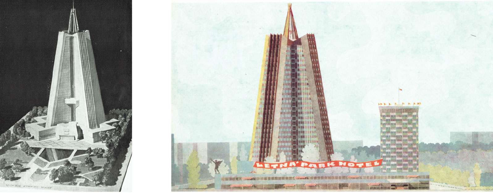 Nerealizovaný návrh radnice pro Toronto, který později Havlíček přenesl na pražskou Letnou.