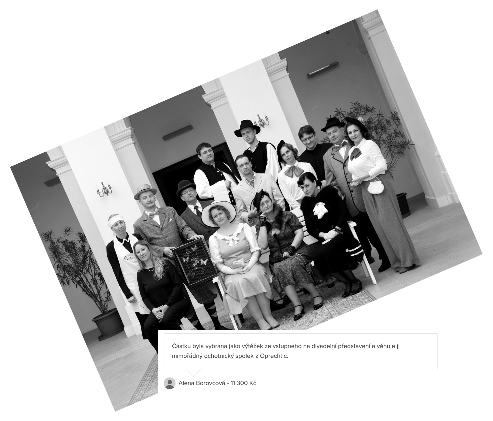 Částku byla vybrána jako výtěžek ze vstupného na divadelní představení a věnuje ji mimořádný ochotnický spolek z Oprechtic.