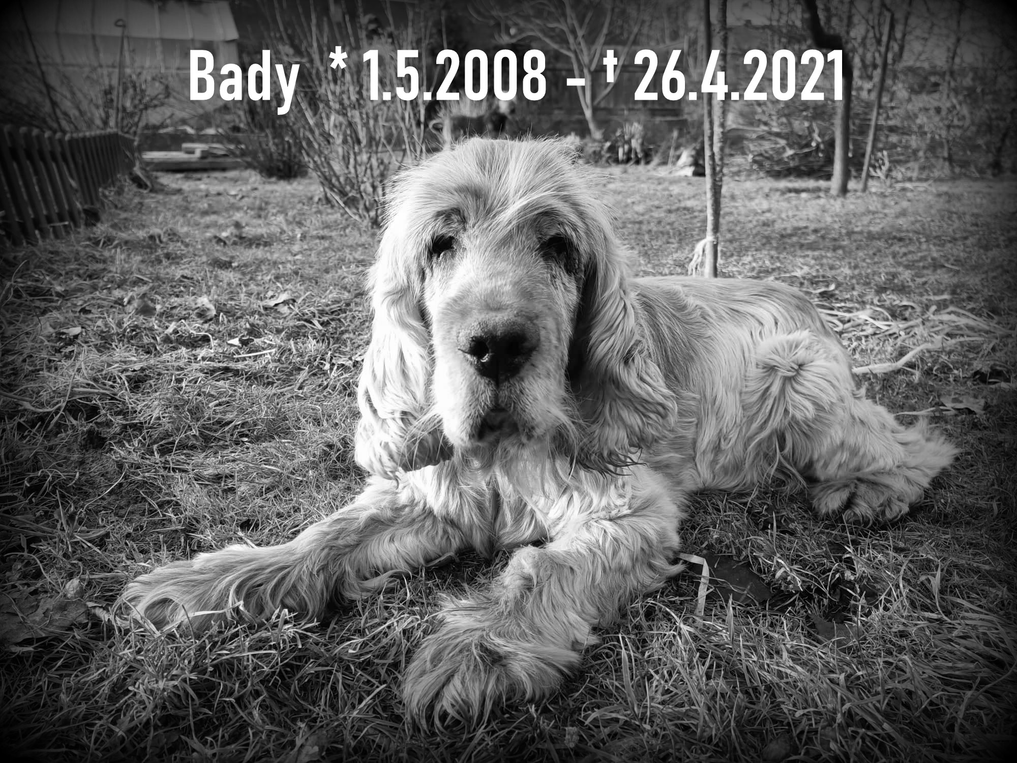 Budete mi moc chybět pane kokr, hlavně to vítání, když jsem přišla z práce. Napřed velké vrtění, pak sis sedl a já jsem tě objala. I když si neviděl a neslyšel, stejně si poznal, že jsem doma. Budu si tě navždycky pamatovat jako největšího bojovníka s osudem, jakého jsem dosud poznala. Kdybych mohla vrátit čas, tak udělám jinak pouze jednu věc – vezmu si tě domů dřív. Bylo mi ctí kamaráde a i když to bolí, tak jsem ráda, že jsem tě právě já doprovázela na tvou poslední cestu, protože vím, že i ty bys to nechtěl jinak.
