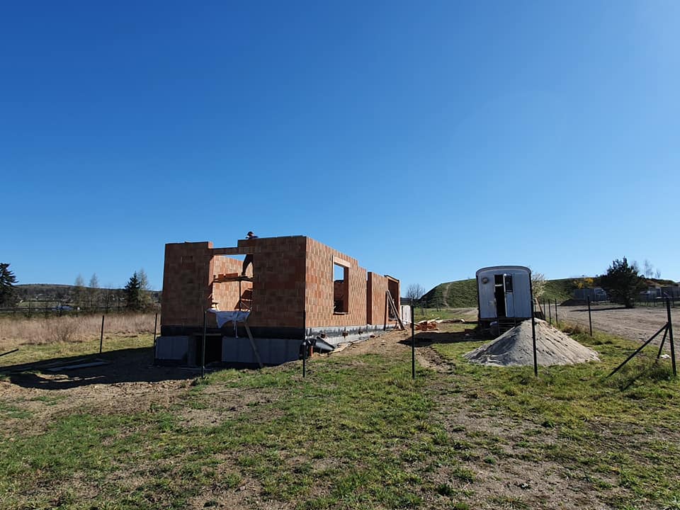 Duben 2019 – realizace kanalizační a vodovodní přípojky, vykopání základů pro stavbu