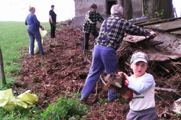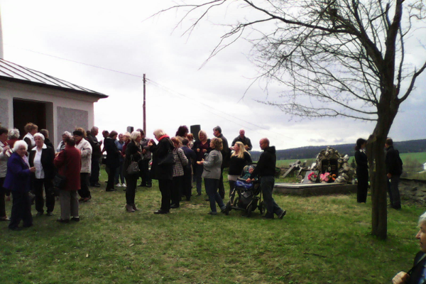 Jednou po mši jsme se domluvili v kostele, že uděláme zdarma brigádu kolem kostela a uklidíme kolem hřbitovní zdi, ať jako věřící v naší vesnici jdeme příkladem. Nyní akci opakujeme. Vyklidili jsme nepořádek z márnice a naložili jej na zapůjčený obecní vozík tak, aby márnice mohla znovu sloužit svému účelu. Zároveň jsme se domluvili, že když už se dosud někteří z nás s péčí starají o květiny a zeleň kolem kamenného kříže, kde se setkáváme, modlíme se, povídáme si jako sousedé a odpočíváme, že by zchátralý kříž, který zde stojí od roku 1837, již dávno skutečně potřeboval restaurovat do nové pěkné podoby a rovněž bychom chtěli vedle kříže rozšířit novou květinovou výsadbu a umístit zde lavičku pro oddech a informační tabuli o místopisu lokality pro místní občany i pro turisty, kteří toto místo kulturní památky navštěvují.
