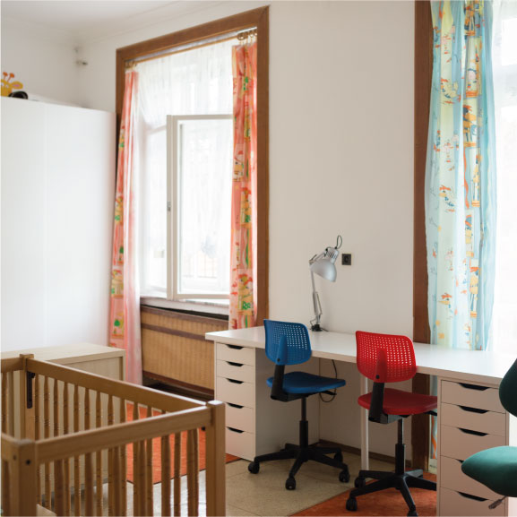 Jedním z důležitých nástrojů vedoucích k podpoře těchto dětí je i materiální zabezpečení služby. Každý pokoj vybavením přizpůsobujeme dle věku, pohlaví, případně sourozeneckých vazeb dětí. Je třeba mít k dispozici různě velké postele, pracovní stoly, židle, nádobí a další. Váš příspěvek bude určen na pořízení tohoto vybavení.
