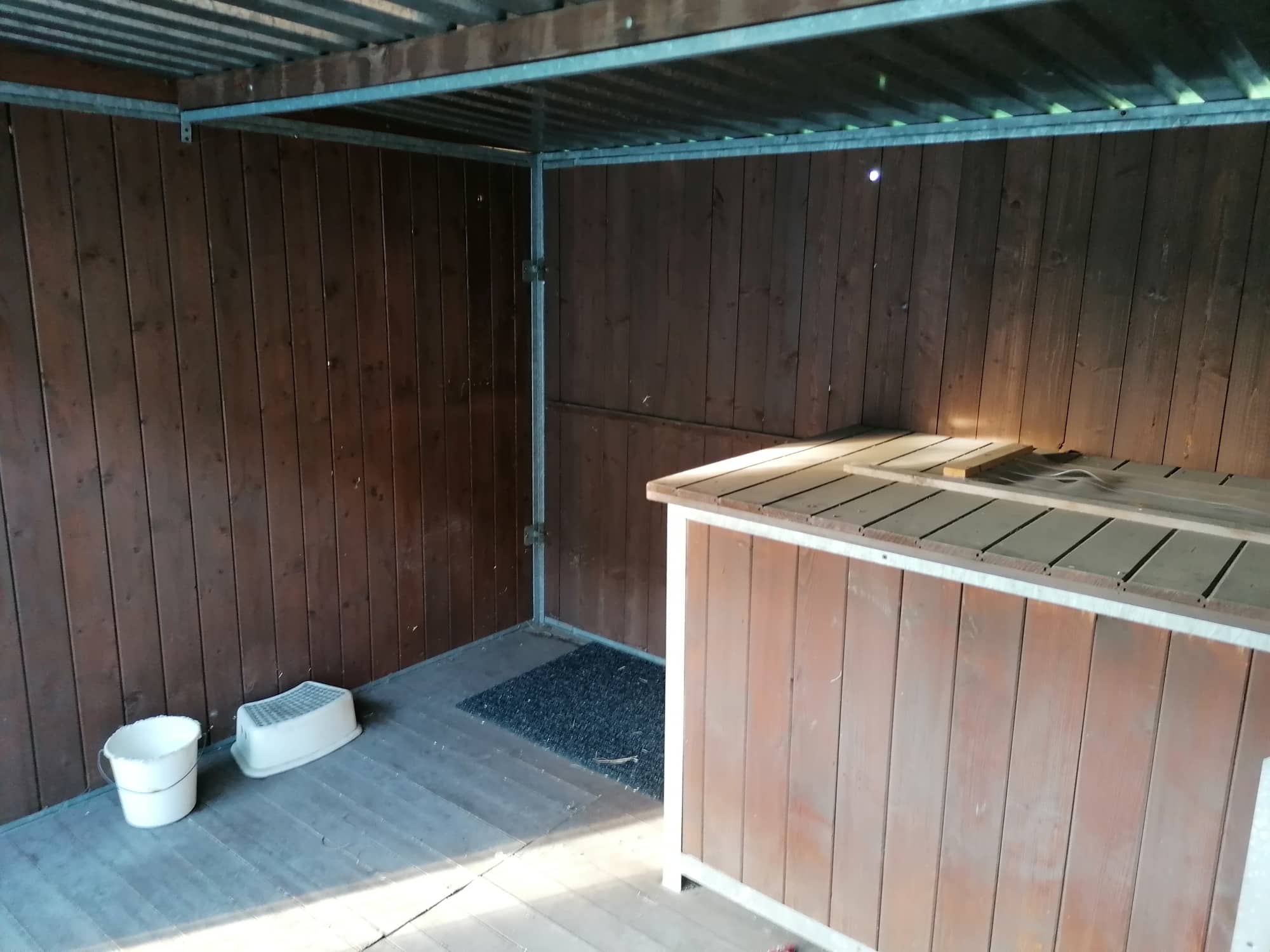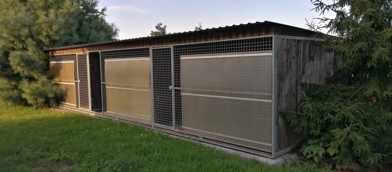 Kotce byly vyrobeny jako samostatné "pokoje" s vestavěnou zateplenou boudou a dřevěnou podlahou. Celá sestava je atyp na objednávku, dokonale zavětrovaná ze tří stran.