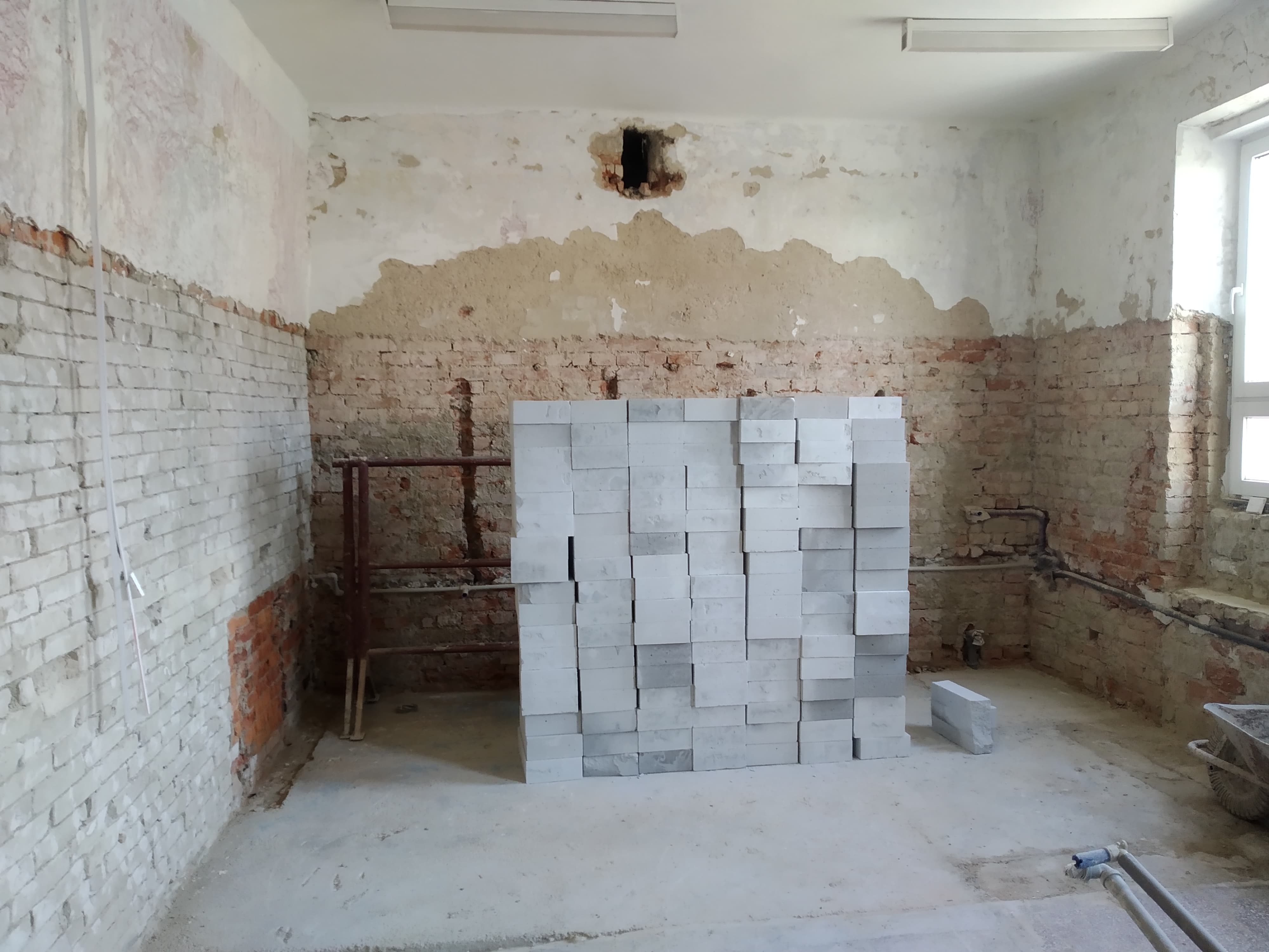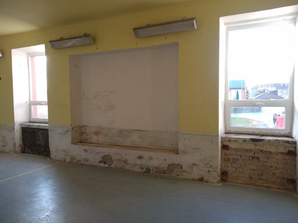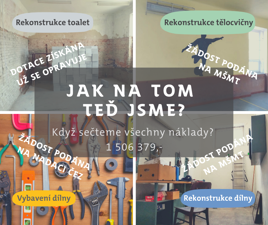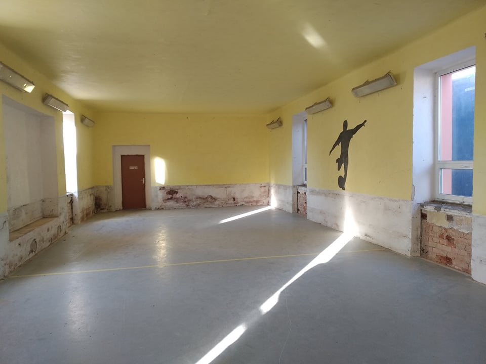 Potřebujeme opravit omítky na stěnách a nahradit staré obložení, které způsobuje vysokou prašnost. Obložení bychom chtěli vyměnit za koberec. Také je potřeba vyměnit sítě v oknech, zlepšit osvětlení a položit nový povrch.