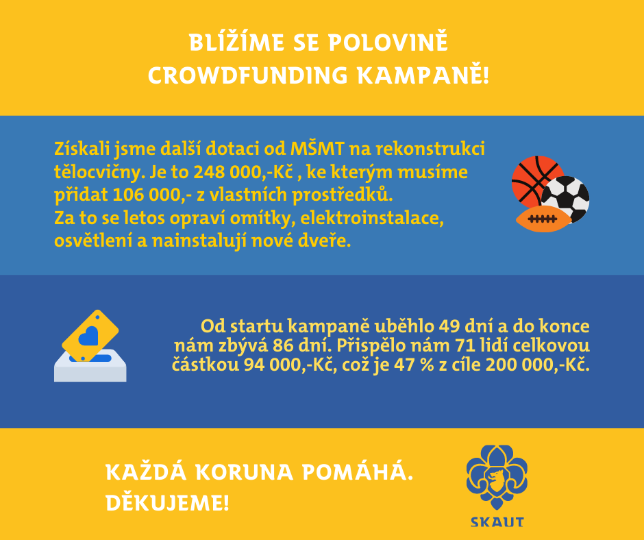 Na rekonstrukci a jejím financování se budou významnou měrou podílet vlastní ušetřené prostředky střediska a také finance z pronájmů budovy jiným skupinám. Zároveň hlídáme všechny dotační tituly, které lze pro naše záměry použít. To ale bohužel nestačí. Proto prosíme o finanční podporu Vás - rodiče, bývalé členy, kamarády a příznivce myšlenky skautingu. Bez vaší podpory se projekty neobejdou!