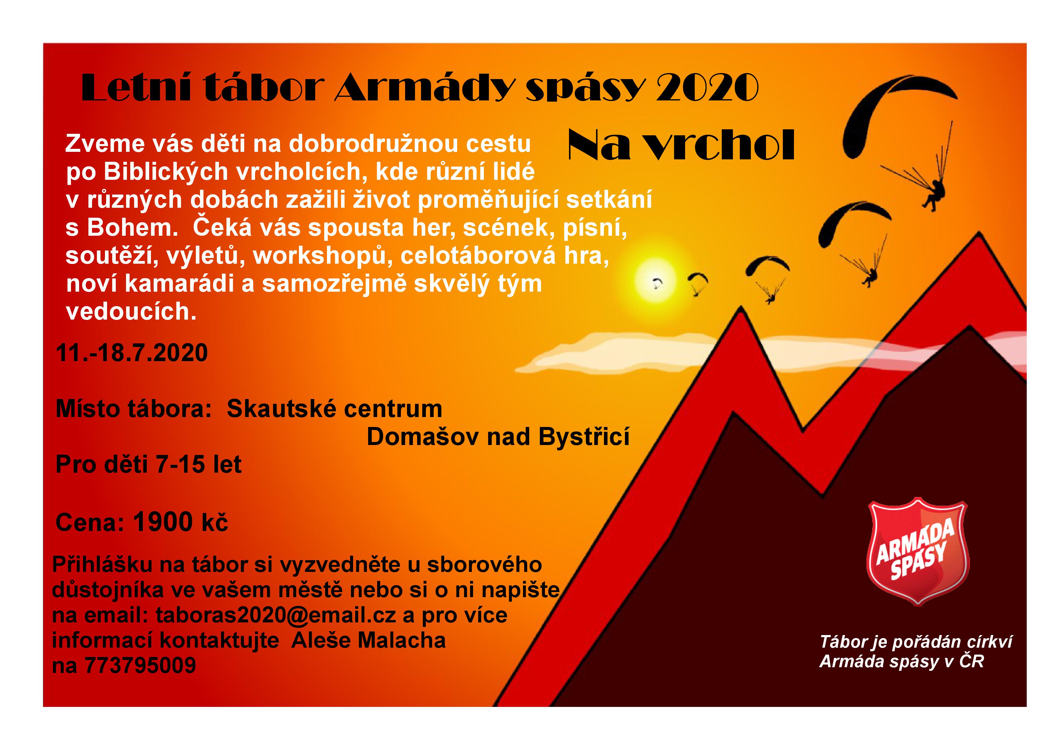 Armáda spásy pořádá letní tábory pro děti již více jak 18 let a snaží se zajistit pobyt všem dětem, které o tábor projeví zájem. Jsou však rodiny v obtížné životní situaci, které svým dětem tuto radost nemohou umožnit. Pomozte nám i jim dopřát prázdninové dobrodružství. Děkujeme.