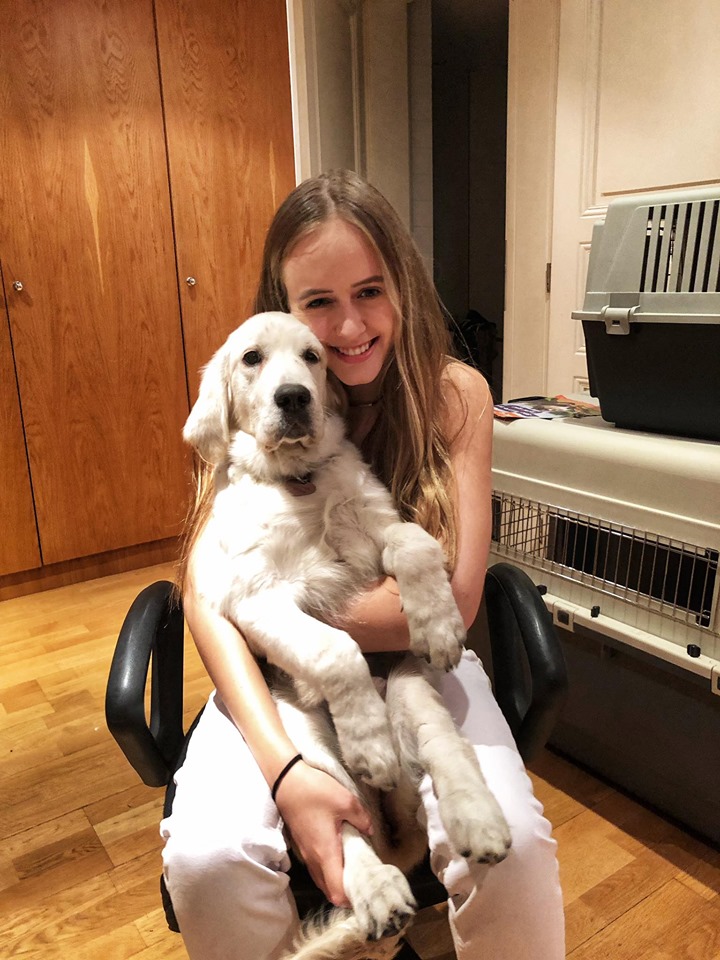 As a medical student, I am always under a lot of stress and under a very rigorous routine. Being alone in a foreign country and without my “Mel” was too hard for me to handle. That is when I decided to start searching for service dogs in the Czech Republic. However, another obstacle occurred: I was not fluent in czech and thus most organizations couldn’t provide me with a dog. As time passed and my anxiety level increased, I decided to get a dog myself. That is when I meet “Joy”, my now 11 month old golden retriever.