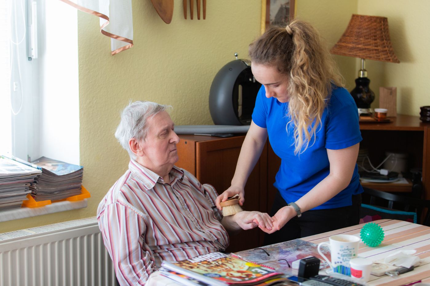 Někdy docházíme do rodin, kde zároveň komunikujeme s dalšími rodinnými příslušníky, kteří klientovi pomáhají a starají se o něj, a společně řešíme možnosti a cíle rehabilitace. V ne tak ojedinělých situacích docházíme i ke klientům, kteří žijí sami, a právě návštěva terapeuta může být i hlavním sociálním kontaktem. Ten je dalším důležitým aspektem domácí rehabilitace.