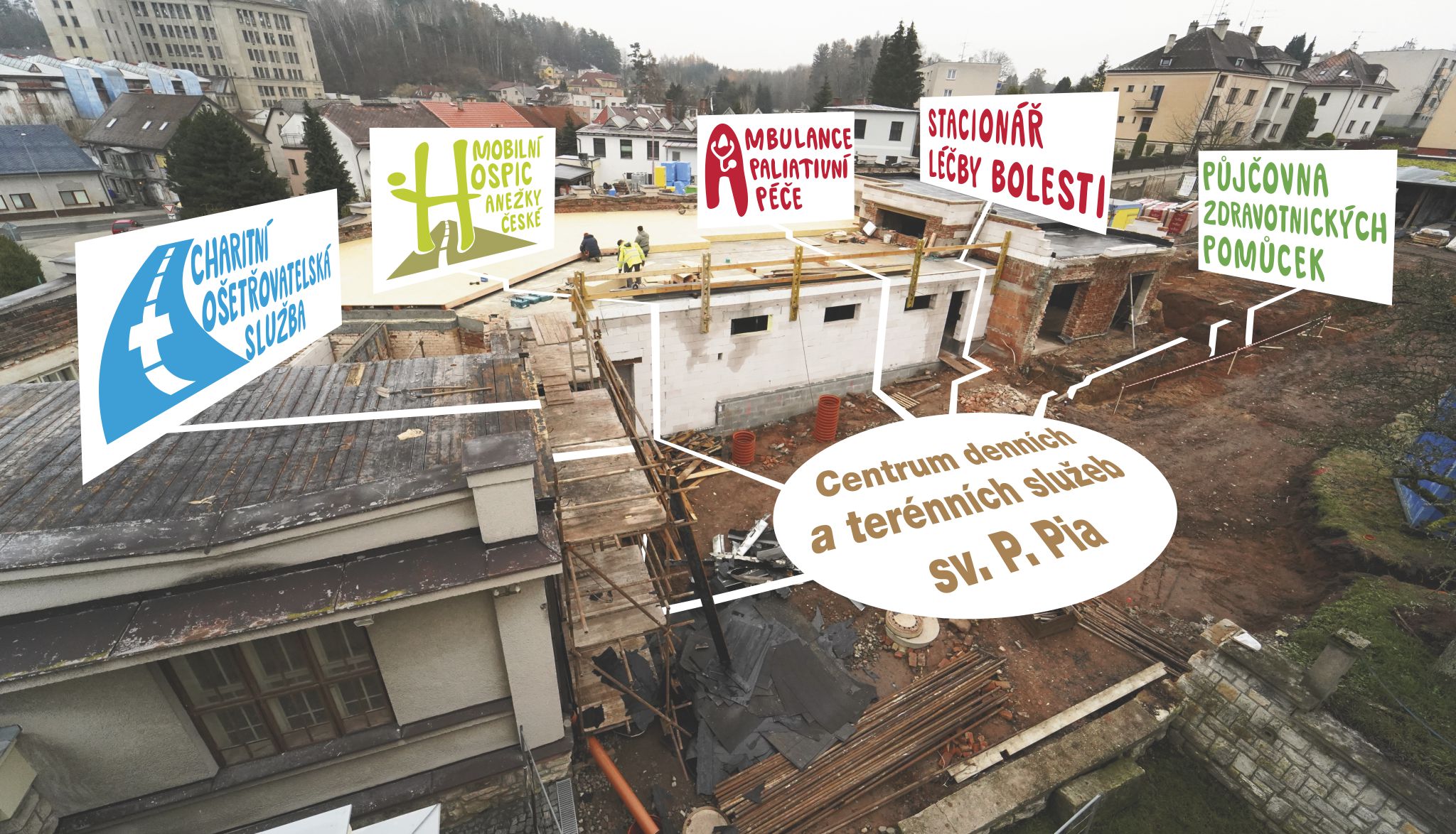 Naší snahou je nyní zajistit pro mobilní hospic a ambulanci nové plnohodnotné zázemí. Toto zázemí je plánováno v objektu bývalých ateliérů Břetislava Kafky v Červeném Kostelci, které je třeba zrekonstruovat. Část nákladů na rekonstrukci pokryjeme díky dotaci Královéhradeckého kraje, zbývající částku, jak věříme, se nám podaří zajistit z darů jednotlivců a firem.