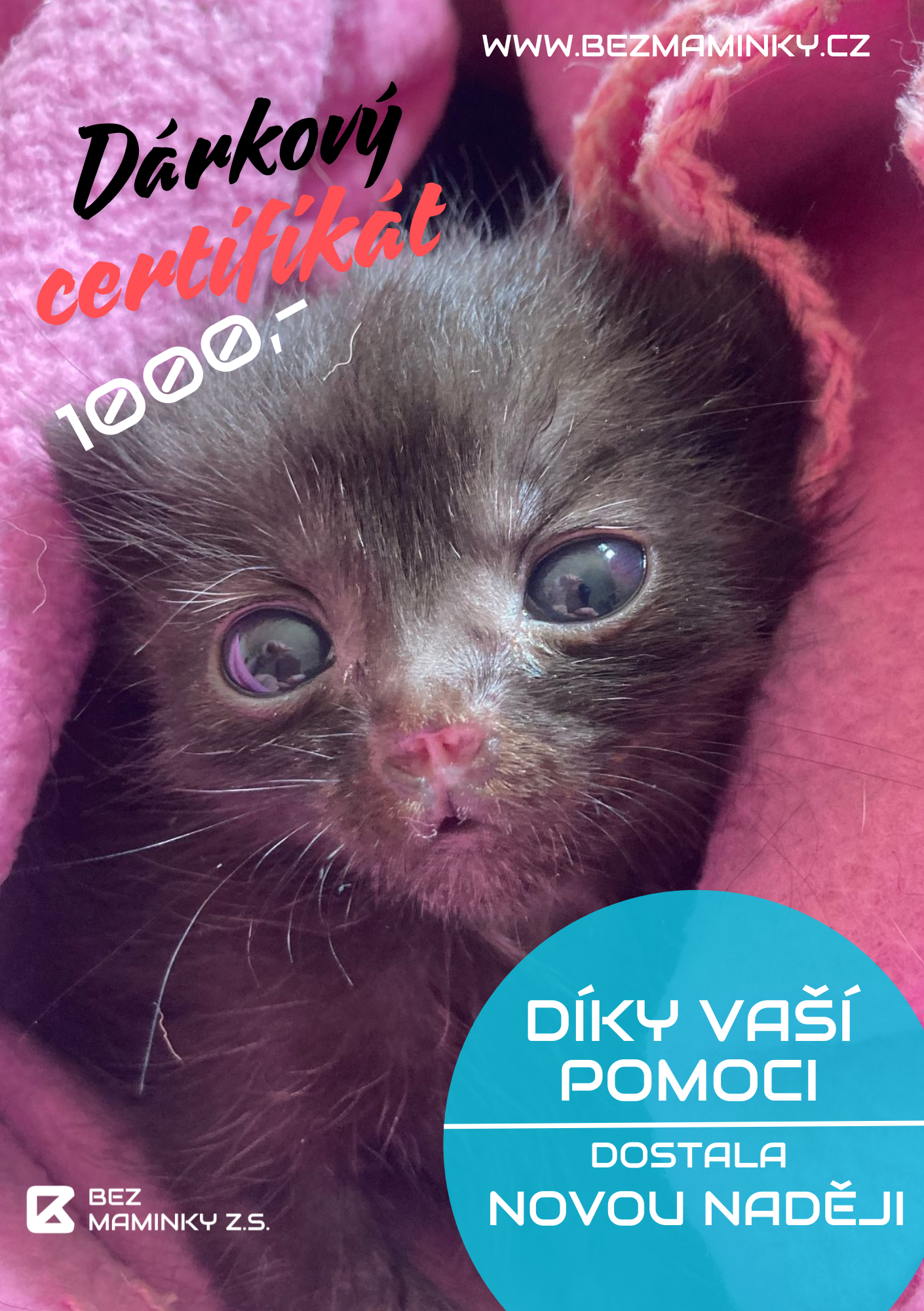 Spolek Bez maminky má za cíl zachraňovat opuštěná koťátka, která z různých důvodů přišla o svoji kočičí maminku, ale bez její péče ještě nedokáží přežít. Na našich webových stránkách si budete moct číst jejich příběhy a budou také sloužit jako kontaktní místo pro všechny, kdo koťata někde naleznou a nebudou se o ně moct postarat. Pro ty, co je jen někde zahlédnou a nebude jim jejich osud lhostejný a doufáme, že i pro ty, kteří budou chtít pomáhat, protože samy to opravdu nezvládneme.