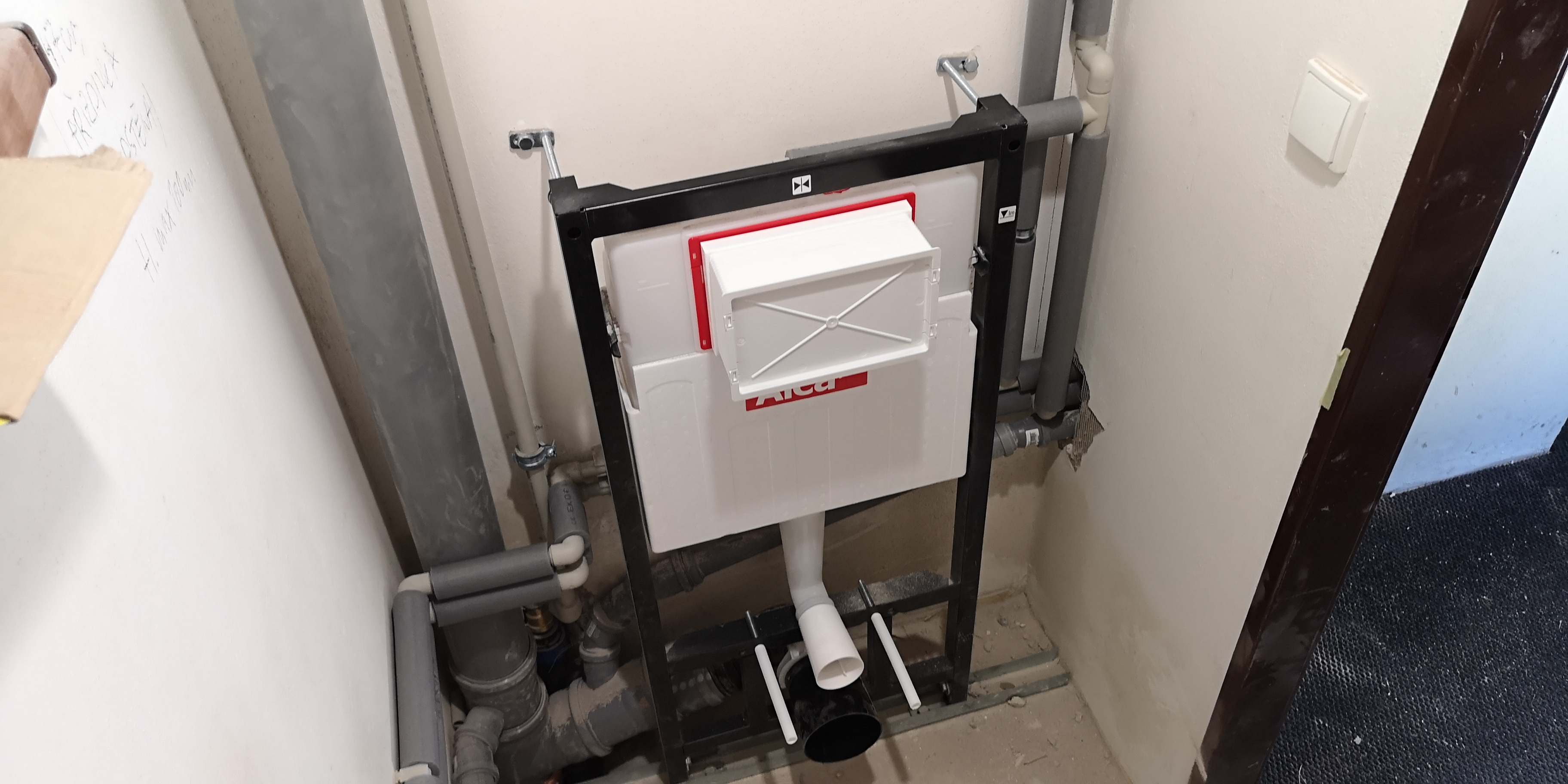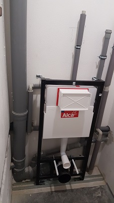 Rozpočet prací dle projektu a výkazu výměr dosáhl částky 950 tis. Kč (vč. DPH), což by bylo dalece nad naše možnosti. Rozhodli jsme se proto zatím zrealizovat jen WC v přízemí, přípravu na druhé v patře a našli firmu, která nám venkovní přípojky postaví za zhruba polovinu rozpočtové částky.