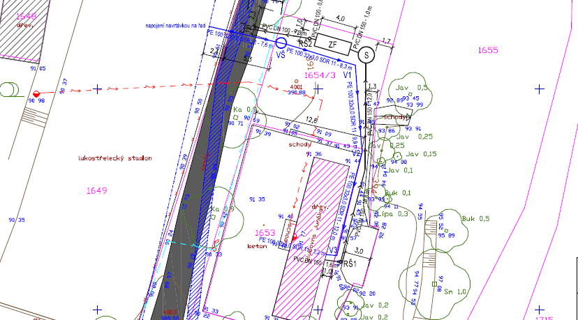 - přípojku vody a kanalizaci s čističkou (cca 40 m),