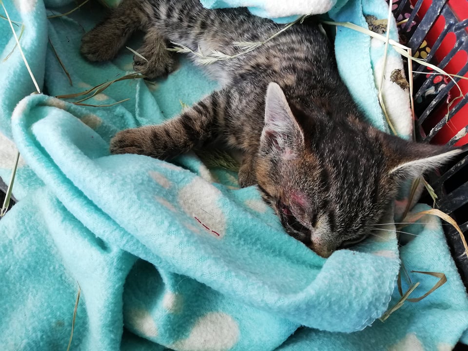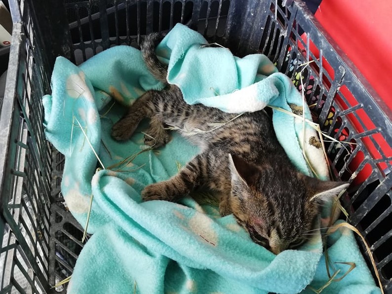 We've just admitted to our care a kitten in critical condition. 😰 The kitten was hit by a car, it has both front legs broken and one eye injured. 😭 The people that informed us about it just let him lie on straw, even though the little one must feel terrible pain and can't stand up. It must have been terrible for the kitten. 😔