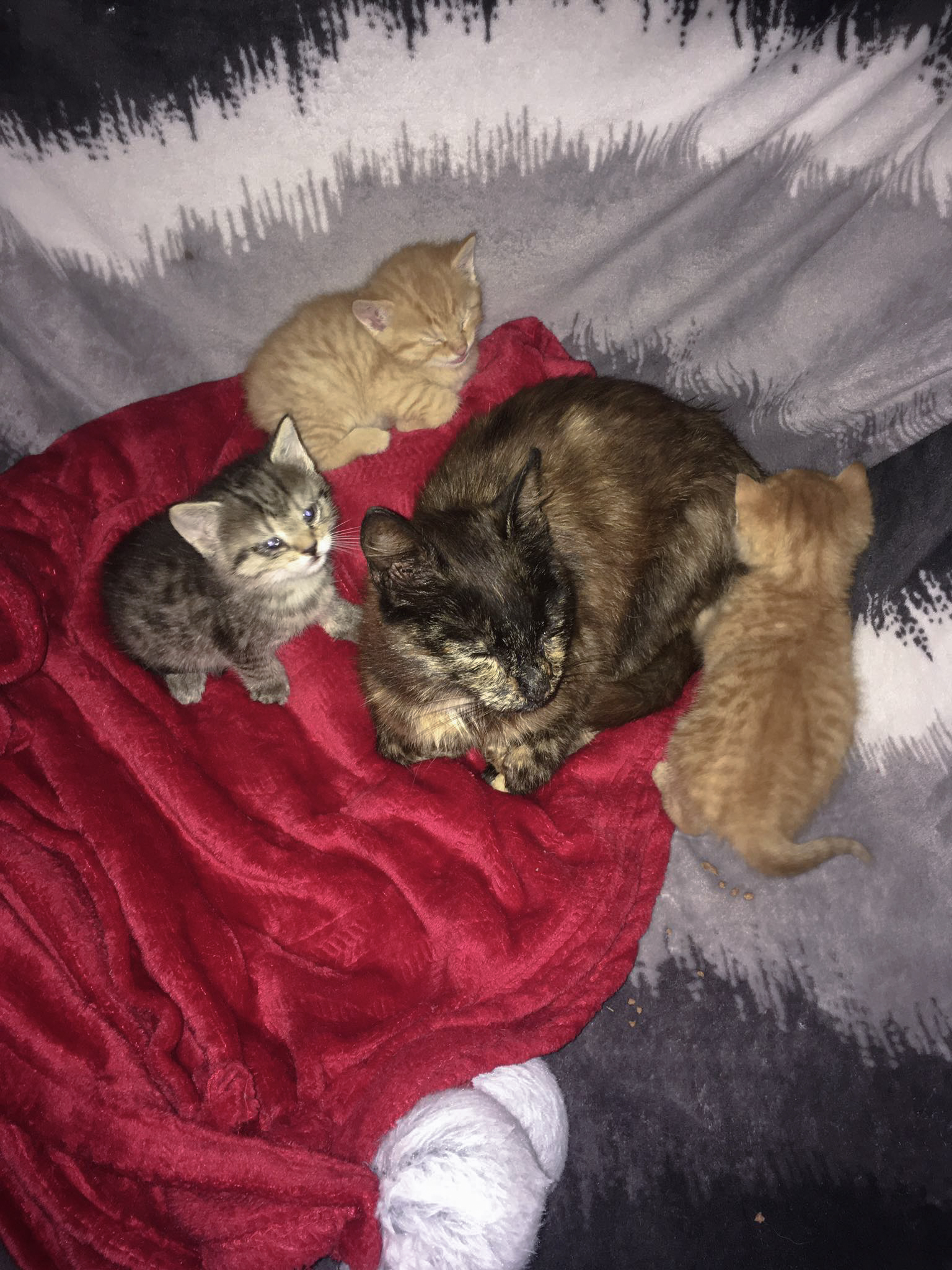 The mum and kittens are doing well. The kittens were prescribed antibiotical eye drops and it seems it works and the state of their eyes is getting better. ❤️