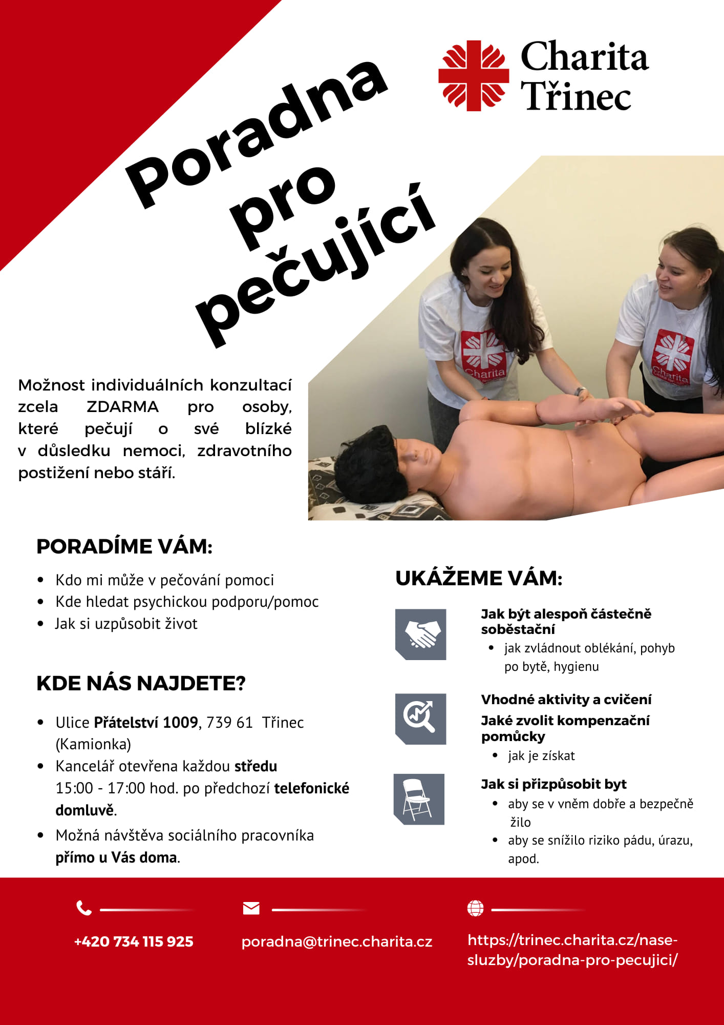 Zajišťujeme proto služby Poradny pro pečující a Podpůrných skupin pro pečující. Obě aktivity jsou navzájem provázány, jsou zdarma a určeny těm, kteří se ocitli v mnohdy nelehké situaci - celodenní péče o osobu blízkou.