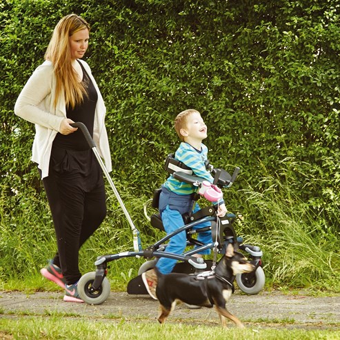Chodítko Mustang zajišťuje dětem oporu při chůzi, nabízí excelentní a pohodlnou oporu horní části trupu uživatele a současně udržuje pánev dítěte mírně fixovanou. Vzpřímená, mírně nakloněná poloha stimuluje k chůzi a umožňuje dítěti se zapojit do denních aktivit. Chodítko Mustang je určeno právě pro děti s mozkovou obrnou, které mají problém s udržením rovnováhy a zhoršenou motorickou funkcí.