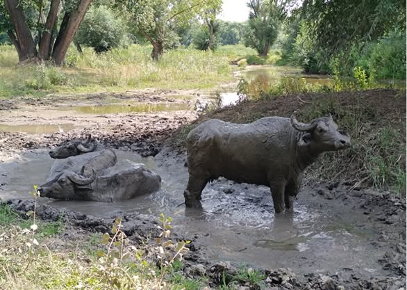 Partička bůvolic se stala také oblíbenou atrakcí pro cyklisty, pastvina se totiž nachází hned u cyklostezky. Jen pro upřesnění: nejedná se o divoké buvoly dovezené z Vietnamu nýbrž o domáci buvoly evropského plemene dovezené z jihočeské buvolí farmy